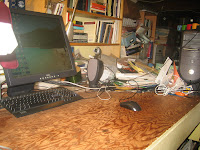 And no less than 20 spiders died in the process. I got to 10 in short order. Mostly babies. Don't feel badly for them, they grow fast and they're not nearly as cute then. I would take breaks to surf the Internet and read all my new favorite blogs. And I left the house today to deliver three bags of toys and four bags of clothes (and a lamp and two broken printers) to St. Vincent DePaul and Goodwill. And pick up my girls from camp after running up to Costco to pick up some cat food and honey. When I returned to my office, new spiders had set up shop in the vacancies left by the old ones. I'm quite certain this could go on and on.